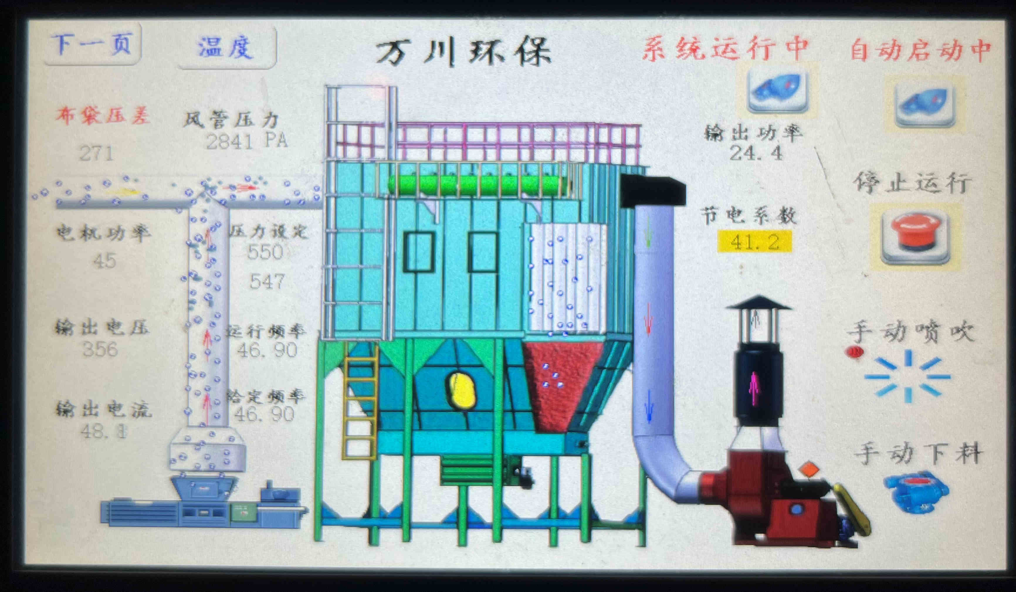 (萬川環(huán)保布袋除塵器配套電控系統(tǒng) 一鍵啟停操作方便快捷,簡單穩(wěn)定)                            (萬川布袋除塵器配套消防噴淋管路,為安全運行保駕護航)